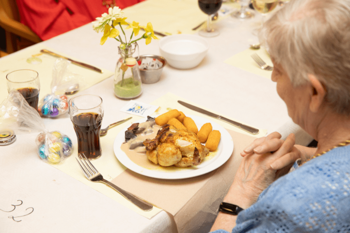 Piepkuiken met champignonsaus en kroketjes