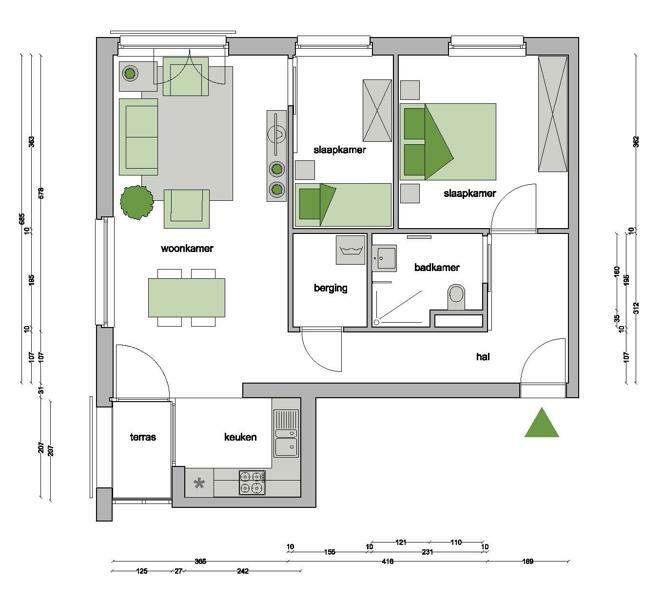 Hier vindt u 48 flats van 55 tot 72 m2 groot, met een of twee slaapkamers. De woningen zijn gebouwd in 2013. Alle flats zijn volledig rolstoeltoegankelijk.