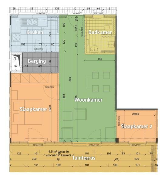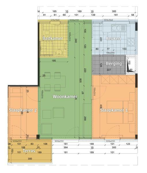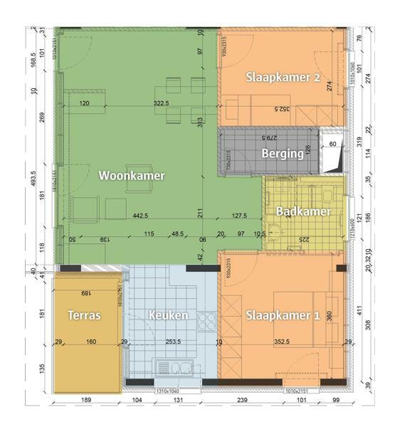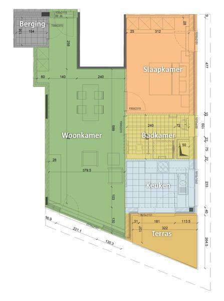 Hier vindt u 116 flats van 50 tot 80 m2 groot, met een of twee slaapkamers. De woningen zijn gebouwd in 2012. Alle flats zijn volledig rolstoeltoegankelijk.
