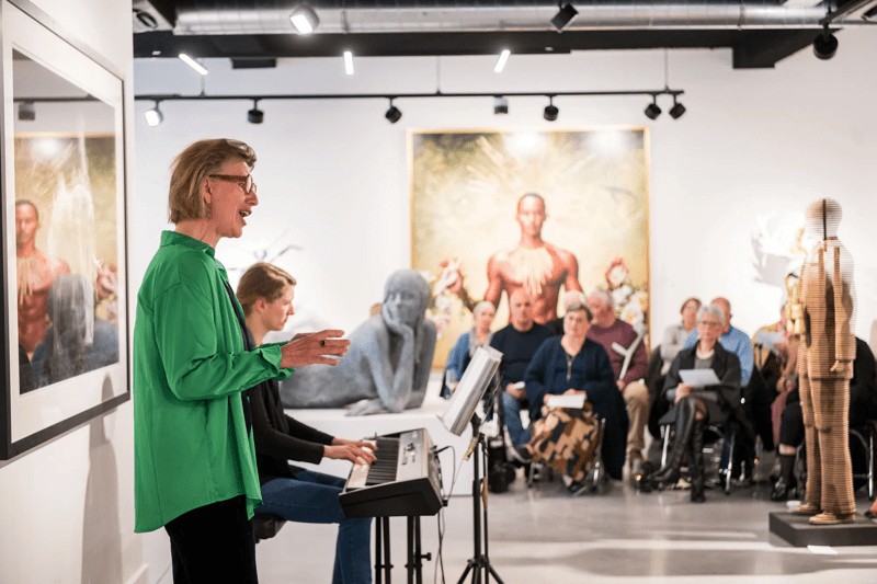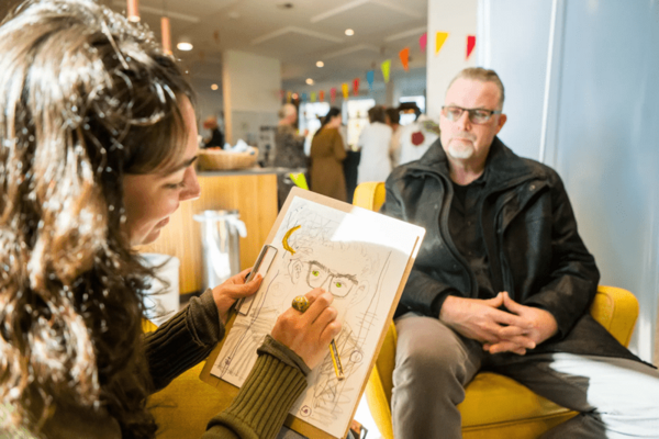 Wat een fijne organisatie! Mijn tante woont in een flatje hier dus ik kwam eens kijken. Leuk dat er veel mensen op af zijn gekomen. Ik heb trouwens ook een portret laten maken, die dame is enorm getalenteerd!
