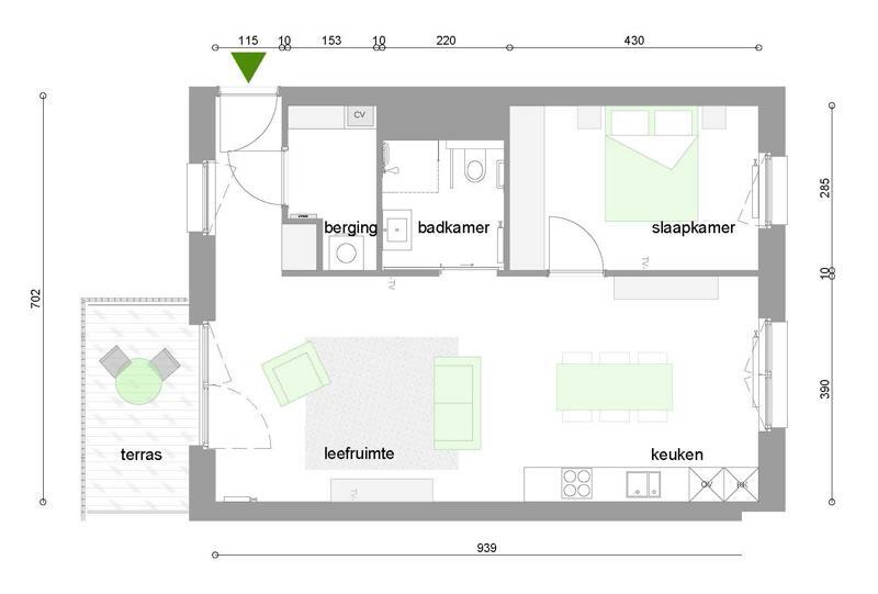 Assistentiewoning met 1 slaapkamer en terras op eerste verdieping.