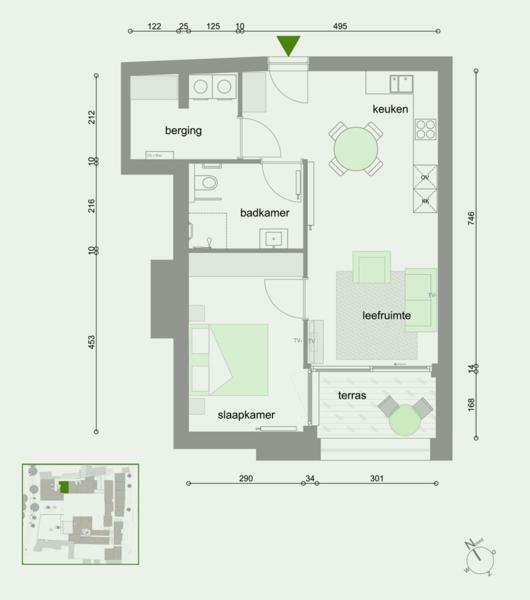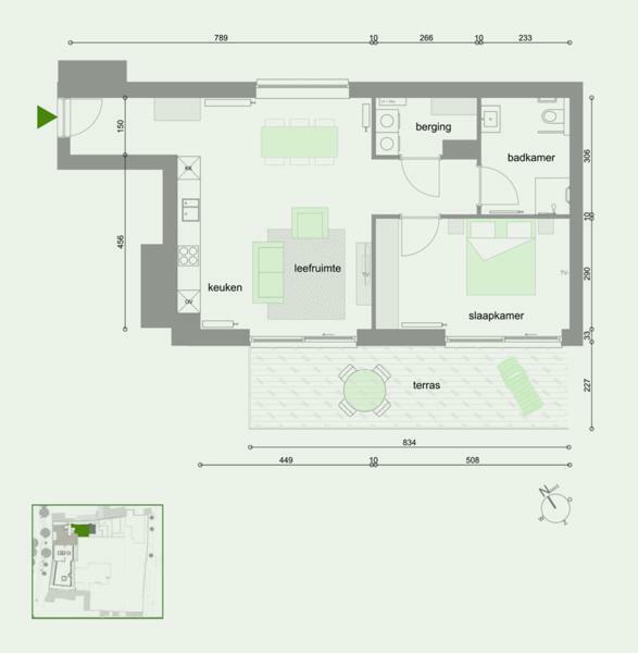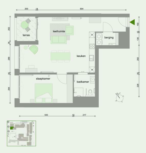 Hieronder vindt u de fiches met de beschrijving van de flattypes. Het volledige overzicht van alle flattypes van Sint Andries – met prijzen en grondplans – vindt u ook in de brochure en in de presentatie op de tabpagina 'troeven'.