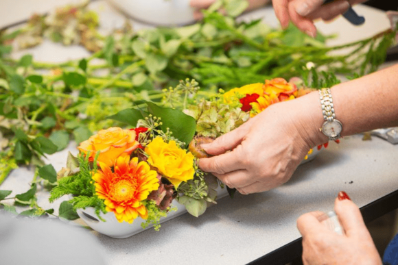 Maandag en dinsdag worden er bloemstukken gemaakt bij lesgeefster Els.