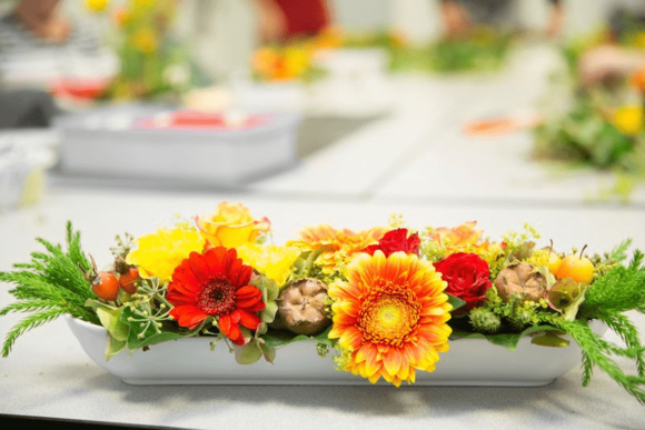 Samen maken wij een mooi bloemstuk.