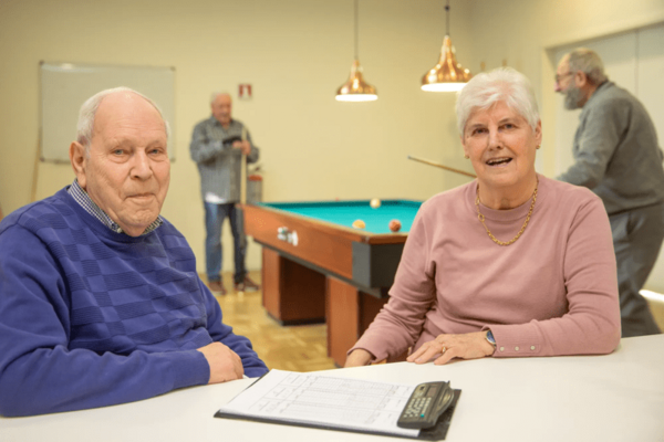 Maurits: “Toen Roger in het ziekenhuis verbleef, hielp ik Irène met de administratie van de biljartclub. Kort na elkaar verloren we beiden onze partner en een tijd later vormden we een koppel. Ik werd net als Irène vrijwilliger in het dienstencentrum. Vandaag doen we hier minstens 3 dagen per week vrijwilligerswerk.”