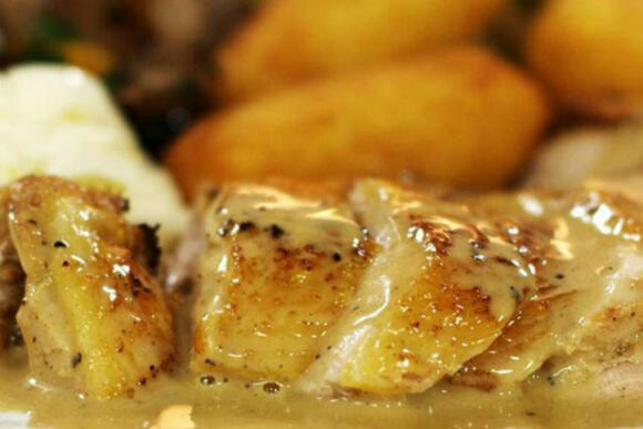 Soep van peterseliewortel en bladpeterselie-Fazant à la Brabançonne, gebraiseerd witloof, puree van savooikool-Crème van tarte tatin