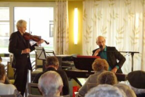 We luisteren naar een viool/pianoconcert gebracht door "Petite fleur". Gespeeld zonder partituur, zodat de violist zich vrij kan bewegen.