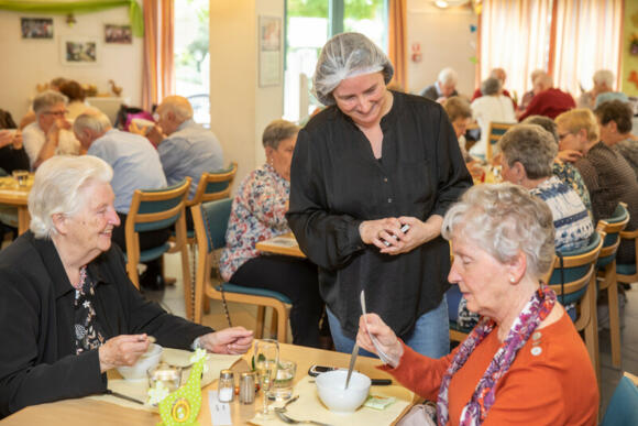 De leerlingen van het vierde middelbaar van Moretus komen helpen met de maaltijden in ons dienstencentrum.