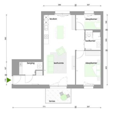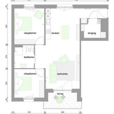 • De flats hebben een lichte leefruimte, een berging, een terras en 1, 2 of 3 slaapkamers. De bruto oppervlakte variëert van 71 tot 135 m2, inclusief terras.