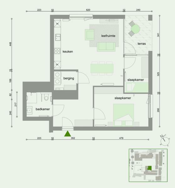 Hieronder vindt u de fiches met de beschrijving van de flattypes. Het volledige overzicht van alle flattypes van Sint Andries – met prijzen en grondplans – vindt u ook in de brochure en in de presentatie op de tabpagina 'troeven'.