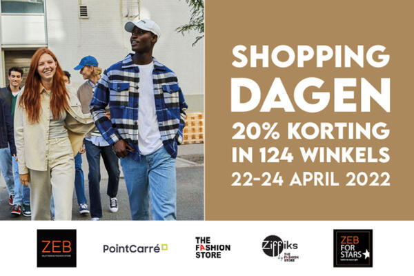 Tijdens het weekend van vrijdag 22 tot en met zondag 24 april profiteer je als personeelslid van 20% korting in alle winkels van ZEB, Point Carré, Ziffiks ... tijdens de Benefits at Work Shoppingdagen.