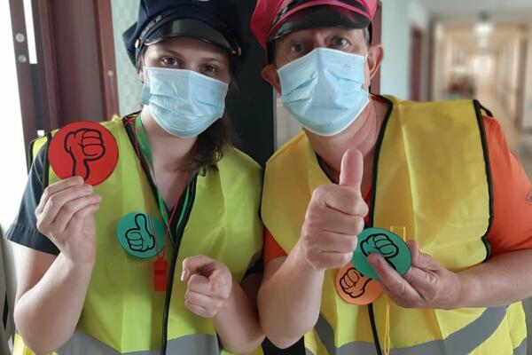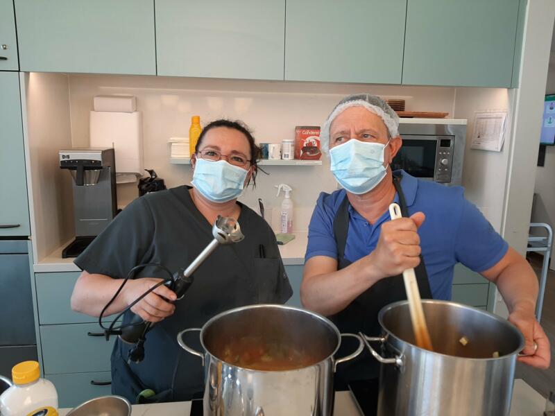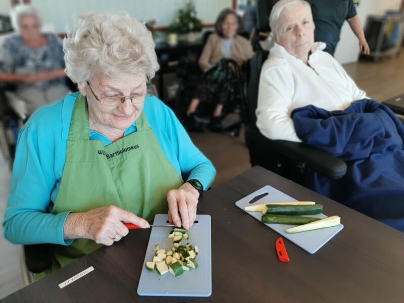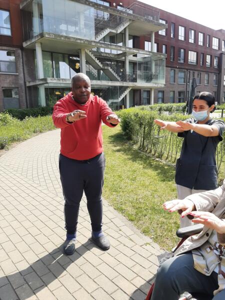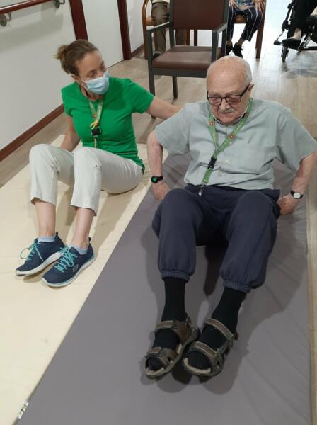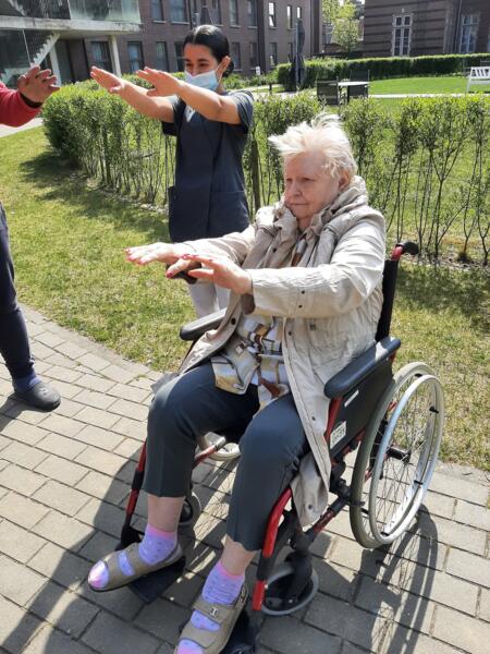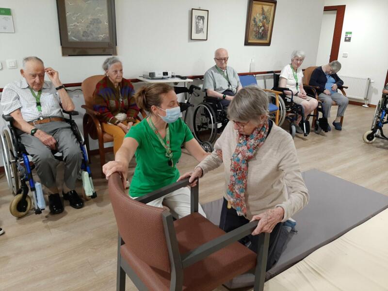 Hans, ergotherapeut van woonzorgcentrum Sint Bartholomeus (Merksem): "In deze week van de valpreventie doen we heel wat originele activiteiten. De eerste dag ging de valpreventiepolitie op stap. Dat waren mijn collega-ergo en ik die op een geestige wijze controleerden 'of mensen gewapend zijn tegen vallen'. We beloonden mensen met een groene sticker, als ze bijvoorbeeld veilig schoeisel droegen. Of waarschuwden hen met een oranje sticker. Onze kinesitherapeuten nemen onze bewoners deze week ook mee langs 'de foute kamer': een kamer die toont dat valgevaar in een klein hoekje schuilt. We leerden hen ook een techniek om makkelijker zelf terug recht te staan. Daarnaast is gezond blijven, geen medicatie nodig hebben, goed eten, in beweging blijven, spieren sterk houden ... allemaal heel belangrijk. Dus we maakten ook samen soep, smoothies en broodpudding. En we deden de fit-o-meter en turnoefeningen. Hier wordt de week van de valpreventie creatief én echt leerrijk ingevuld!"