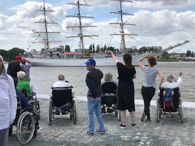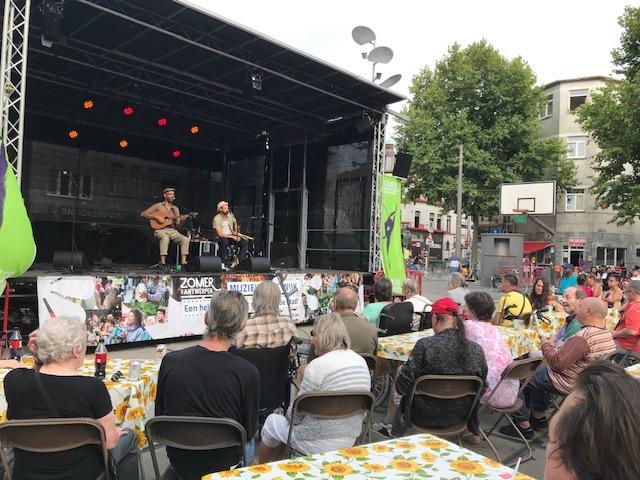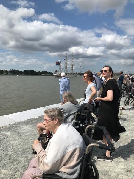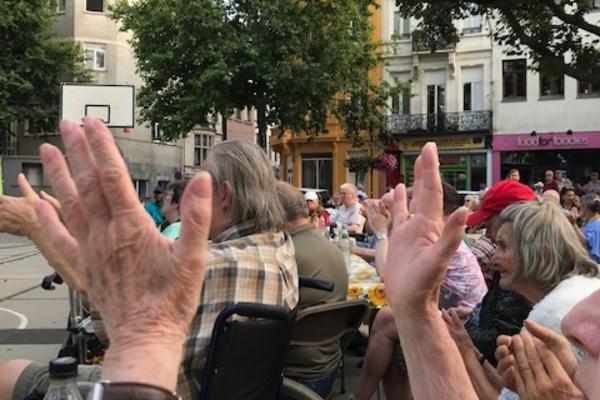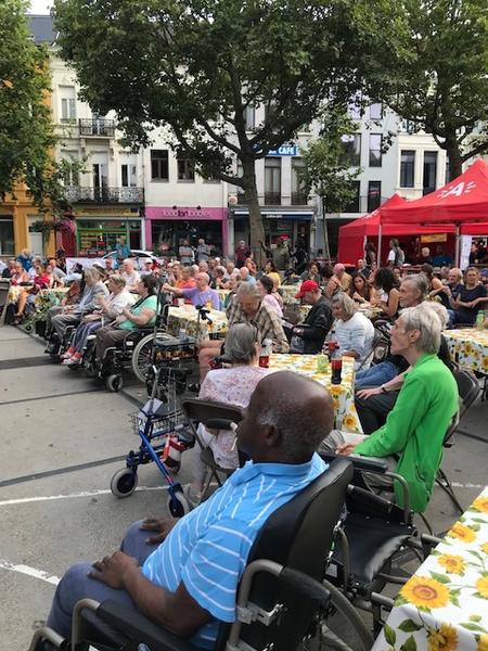 Cynthia: “Ons woonzorgcentrum ligt midden in ’t Stad. Dat maakt dat we gretig ingaan op het aanbod van de Zomer van Antwerpen. Zo zijn we deze maand hier op ’t Coninckplein elke donderdagavond met zo’n 30 bewoners present voor ‘Muziek in de wijk’. De buurtbewoners kennen ons al, want ze houden onze plaatsjes vrij en steken graag een handje toe. Of we gaan naar het optreden in de Zomerbar van de Zoo. Of nemen de waterbus naar het openluchtzwembad van Sint-Anna-strand. Eind juli zijn we nog de imposante zeilschepen gaan uitwuiven bij de Tall Ships Races.